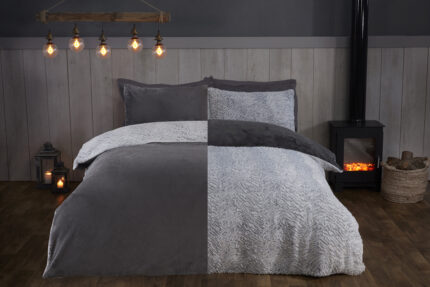 Sparkle Ribbed Fleece Duvet Cover With Pillowcases – Grey