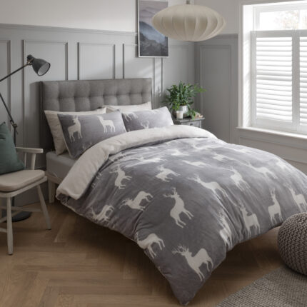 Stags Duvet Cover and Pillowcase Set – Grey
