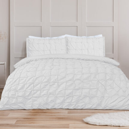 Rouched Pleat Duvet Cover With Pillowcases – White