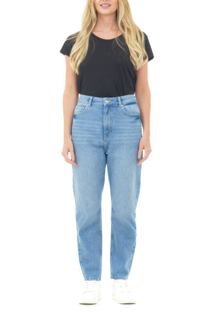 Women’s High Rise Cotton Mom Jeans with Pockets – Casual Fit – Mid Blue