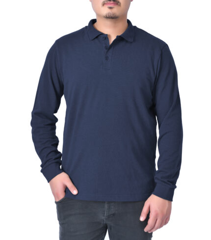 Mens Classic Long Sleeve Polo Shirt – Blue