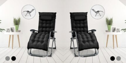 Zero Gravity Chair with Cushion & Pillow – Pair – Black