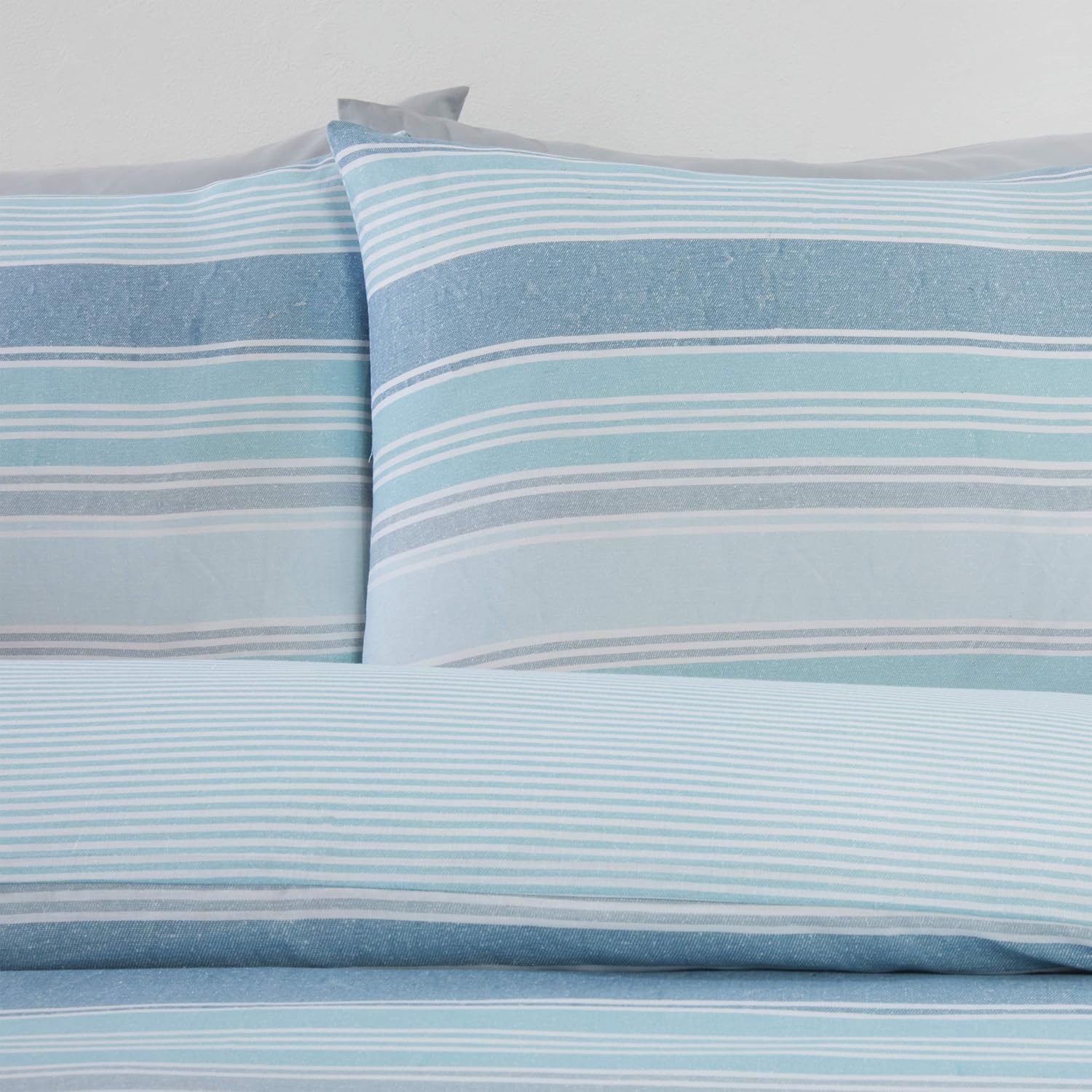 Chambray Stripe Duvet Cover With Pillowcases – Blue