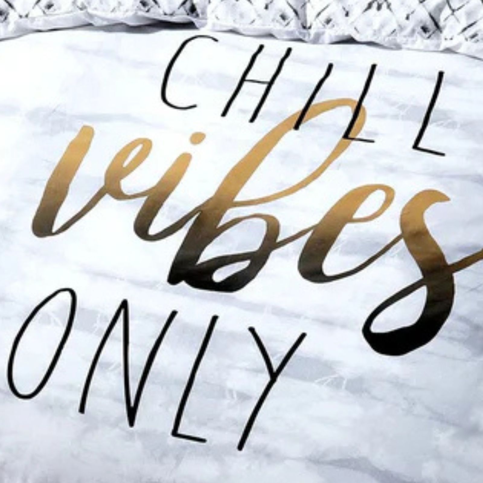 Chill Vibes Only Slogan Soft Easy Care Grey White Diamond Geo Reversible Duvet Cover Quilt Bedding Set with Pillowcase;With a message we can all relate to, this bedding set is perfect for everyone’s bedroom!