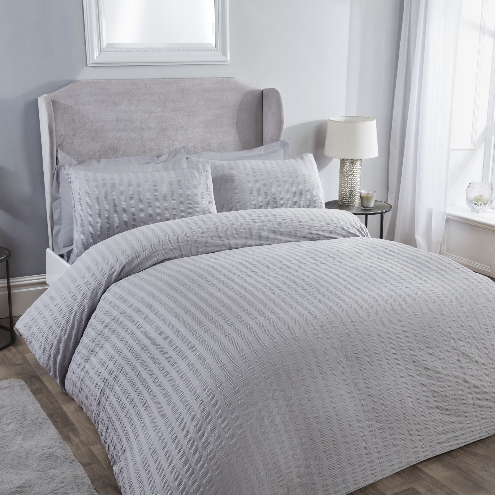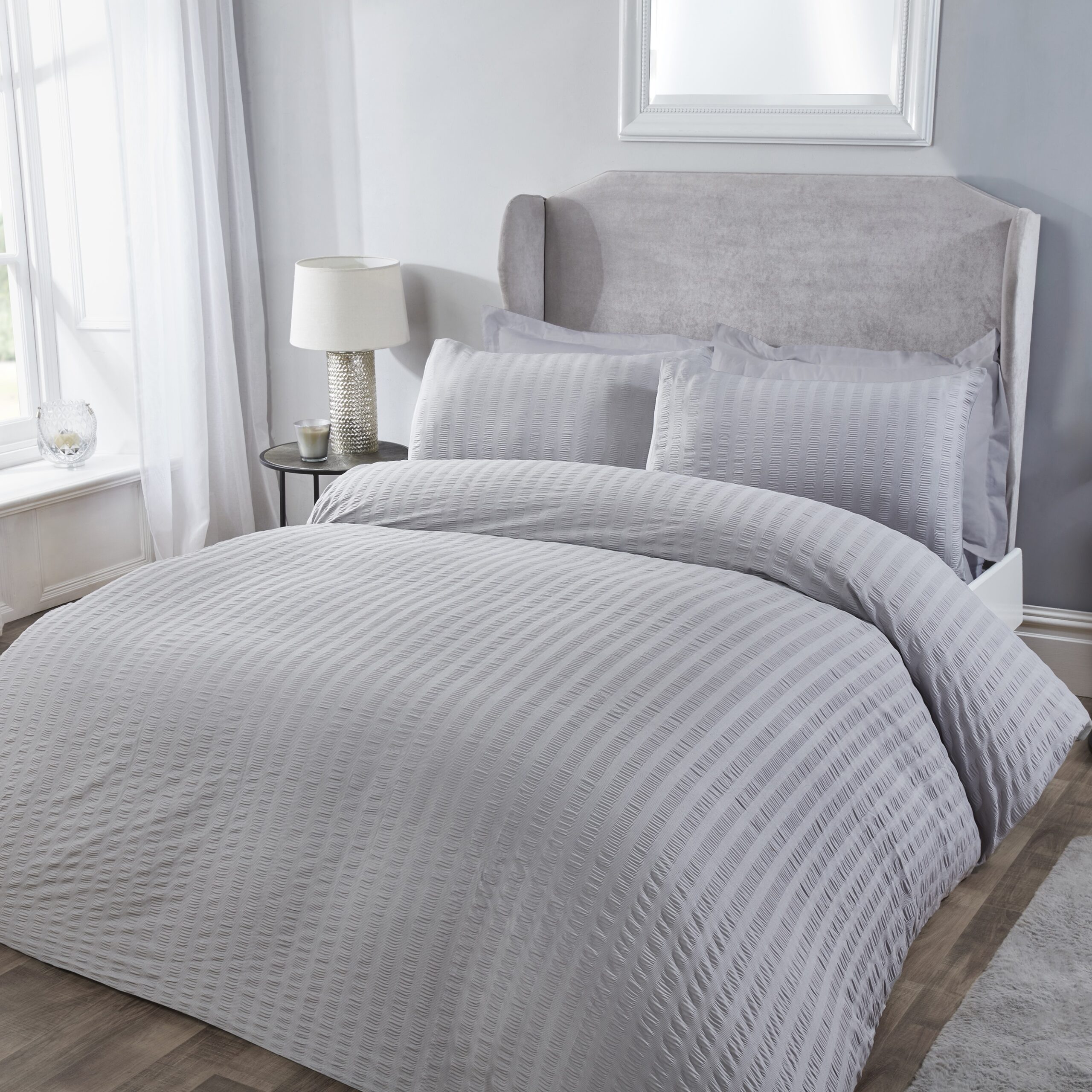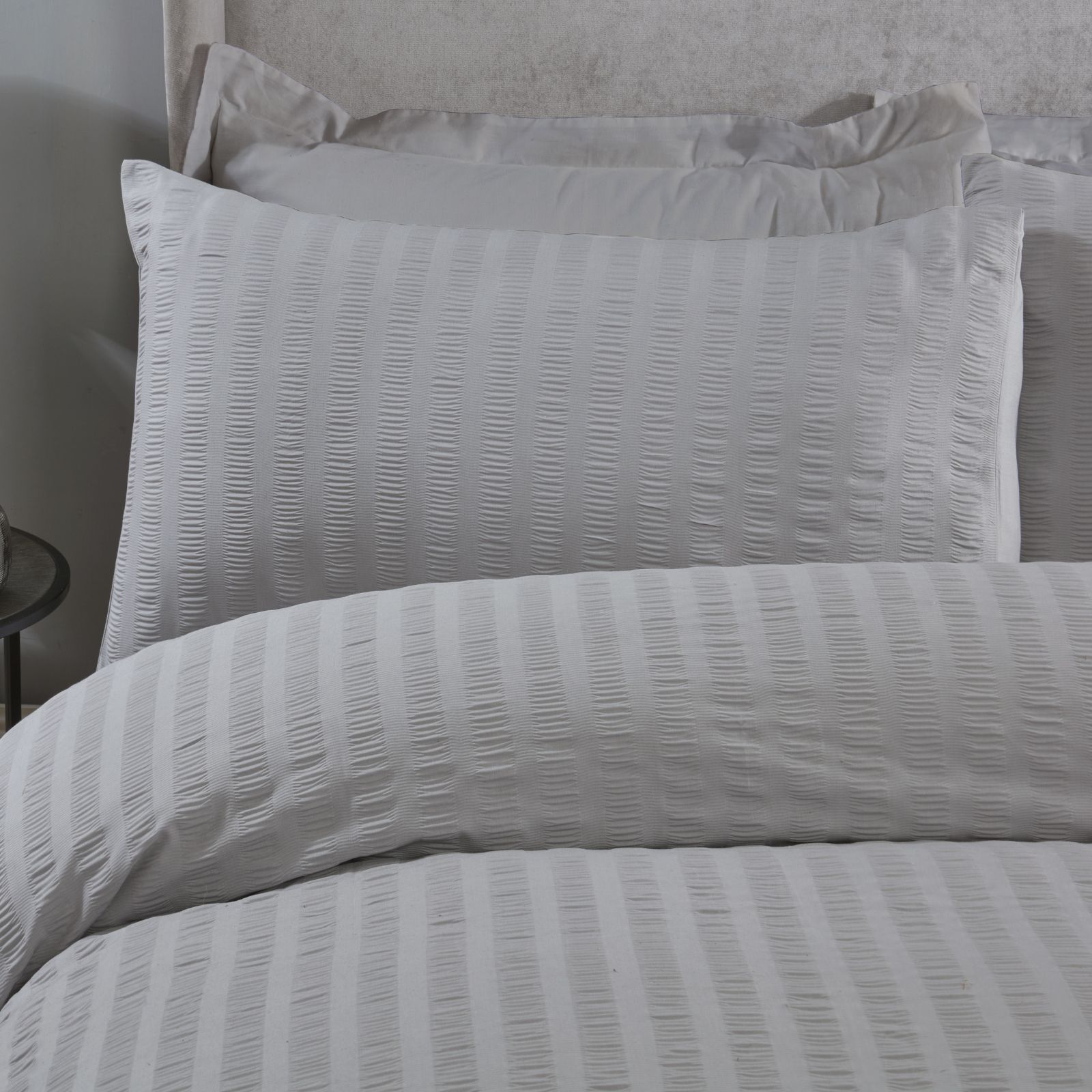 Classic Seersucker Duvet Cover With Pillowcases – Silver