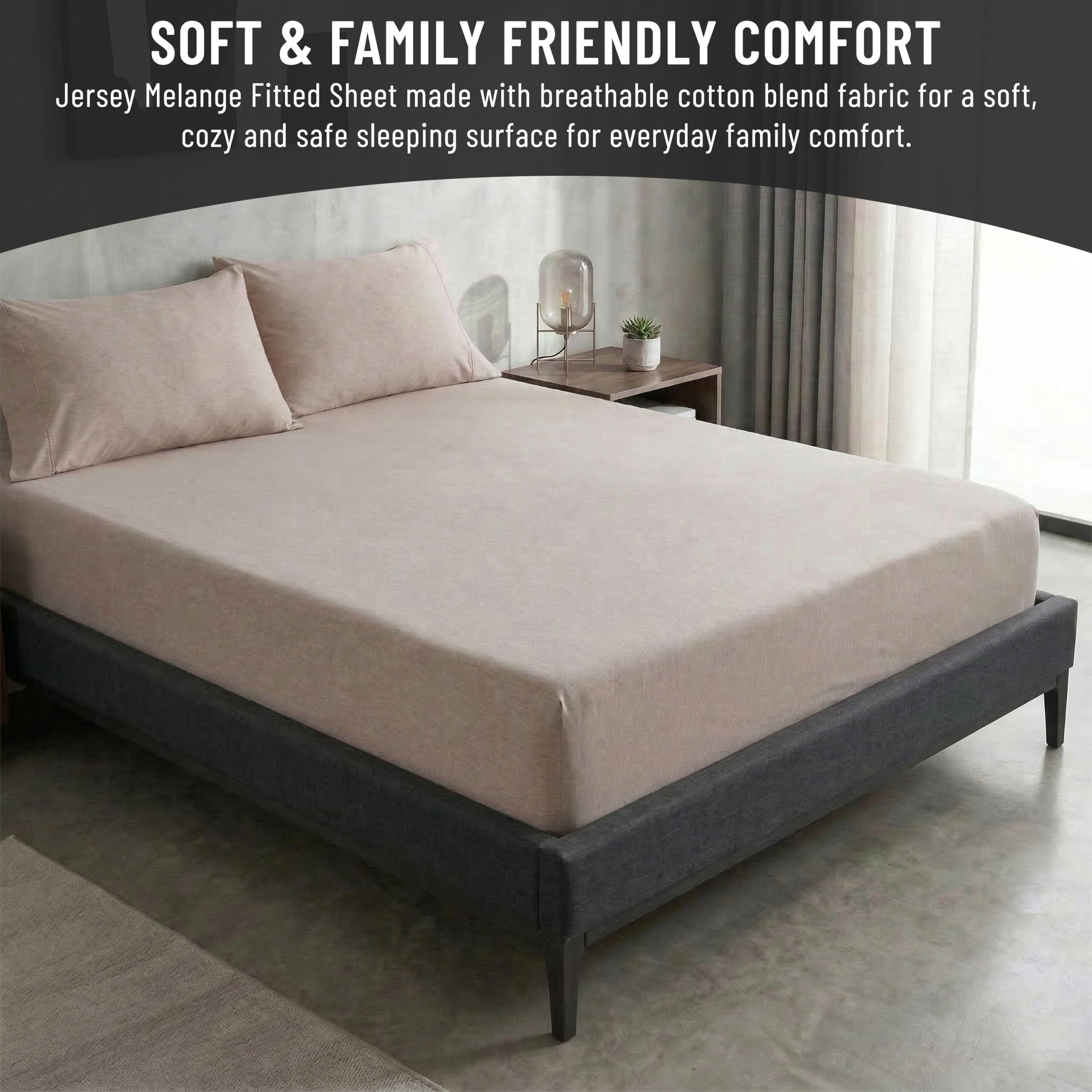 Jersey Melange Fitted Sheet Super Soft Warm Cosy Comfortable Easy Care Plain Yarn Dyed Bedding Bedsheet Bed Linen.