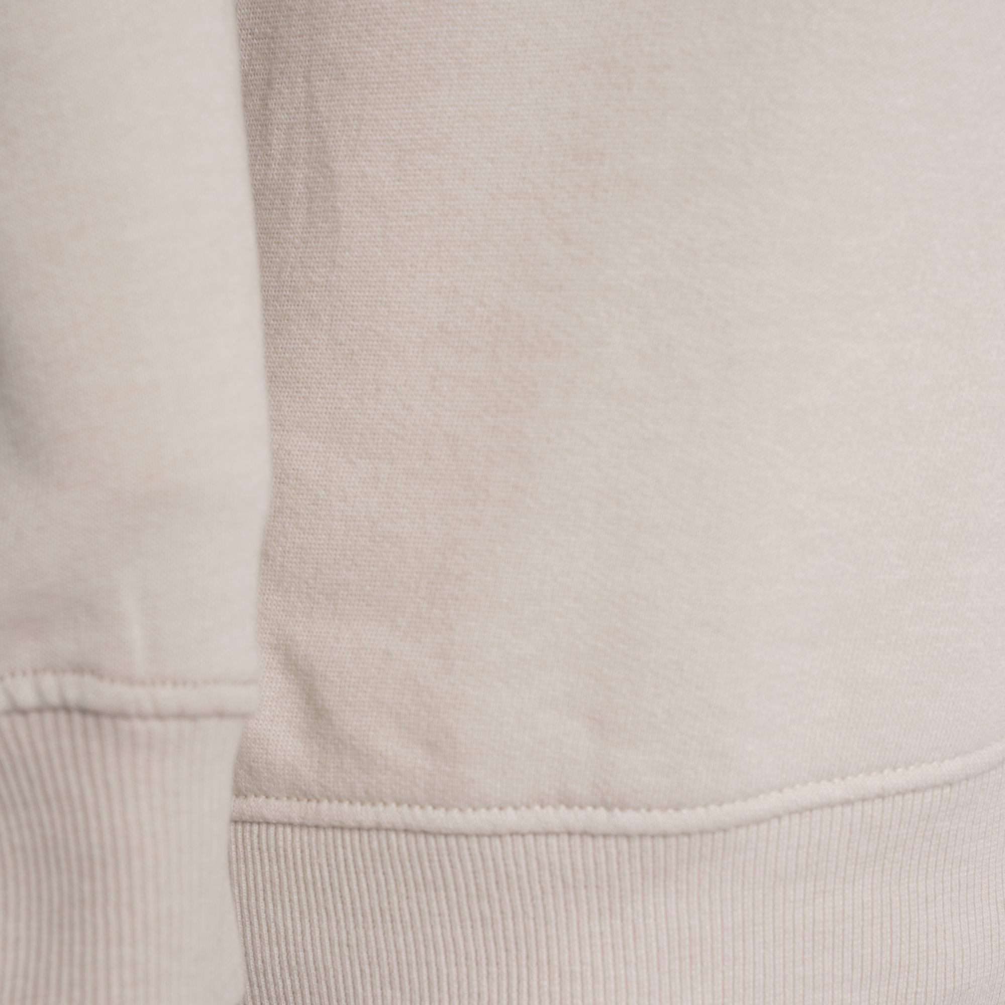 Designed with ribbed waist, neck, and cuffs for shape retention, this plain-weave pullover offers a sleek, timeless silhouette.