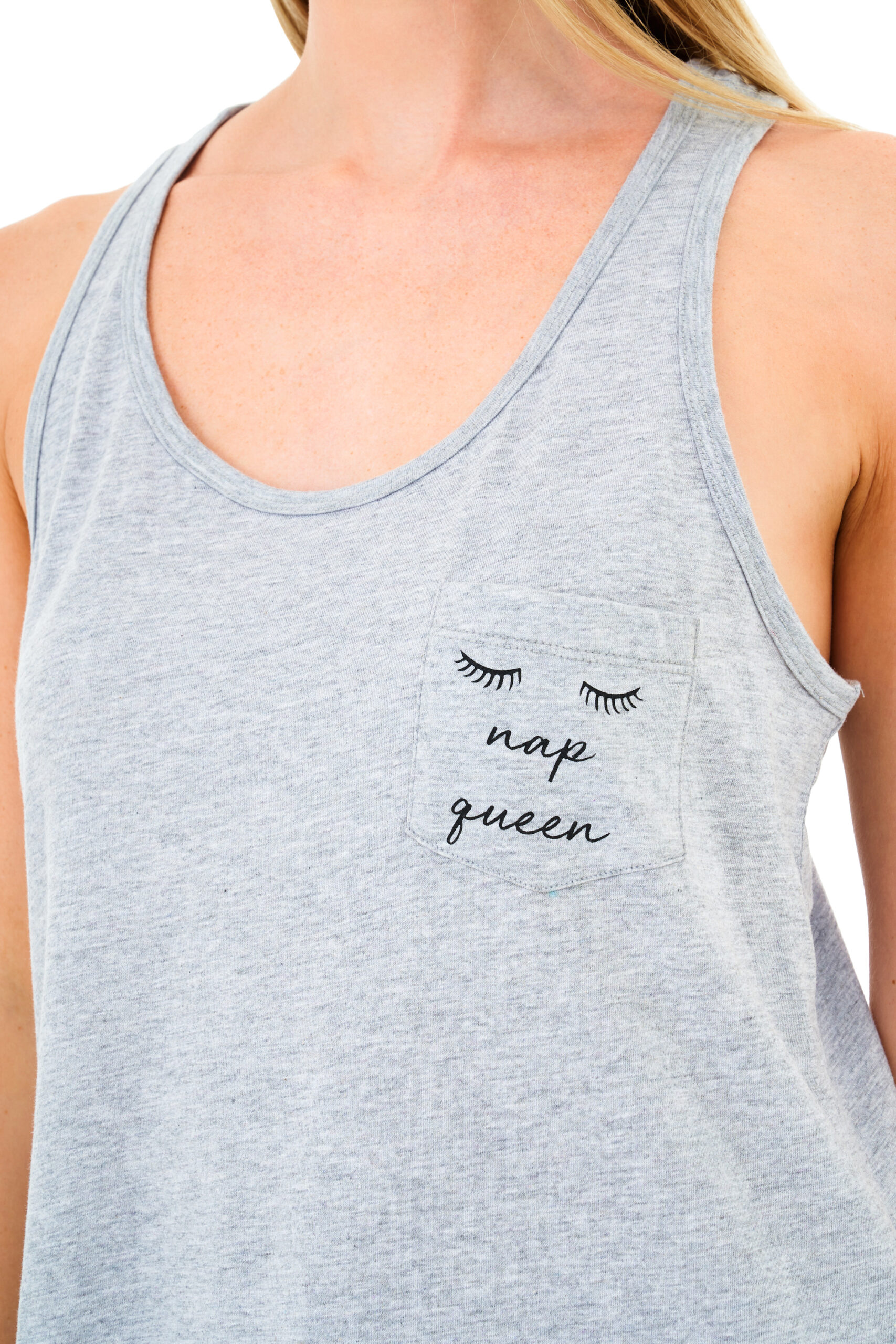 Relax in effortless comfort with this ladies’ racerback nightie featuring a chic knee-length fit and a playful “Nap Queen” slogan on the chest pocket. Lightweight and easy to wear, it’s perfect for cosy nights, lounging, or everyday sleepwear.