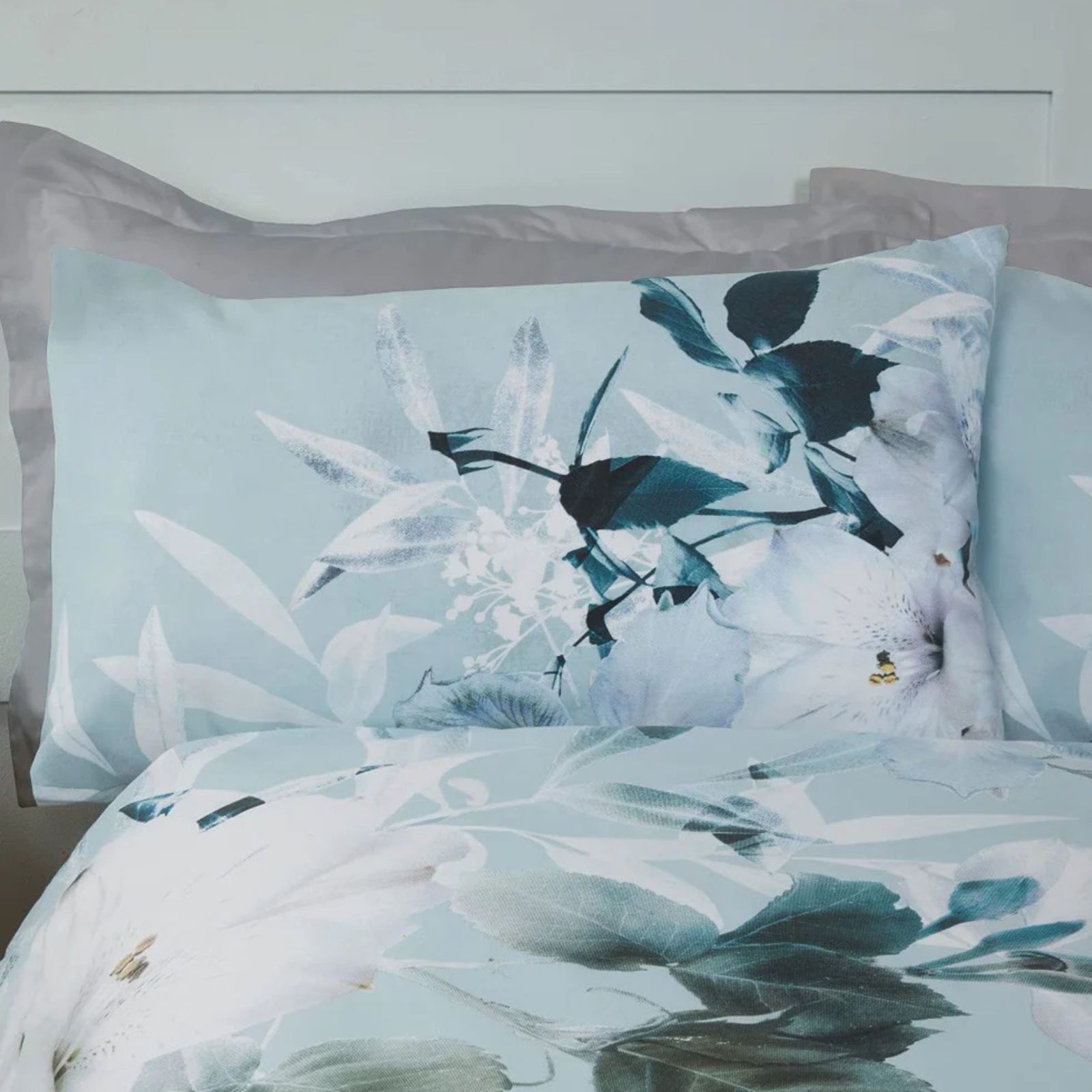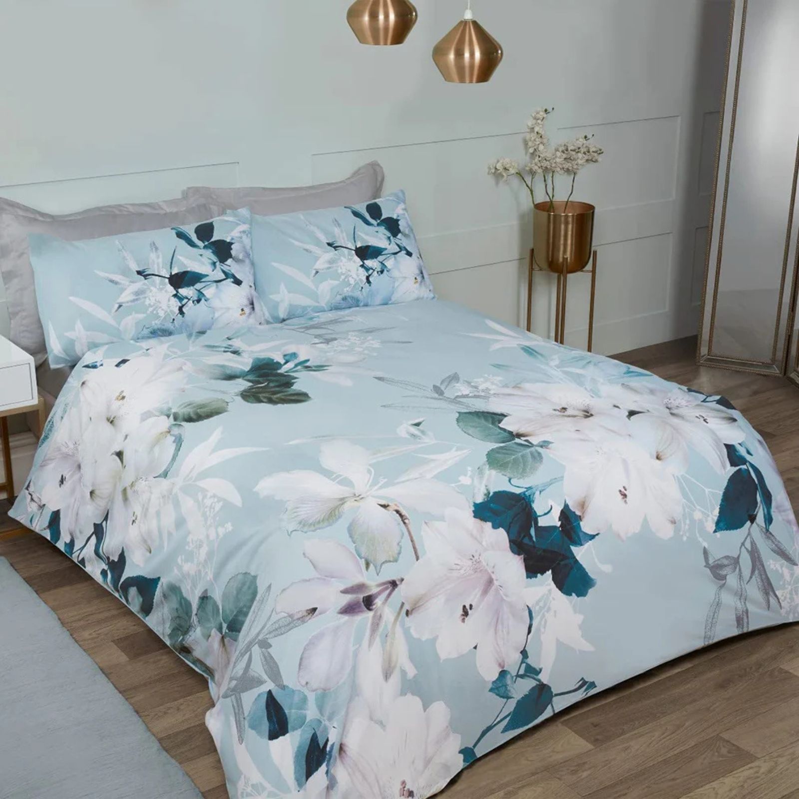 Large Floral Duvet Cover With Pillowcases – Duck Egg