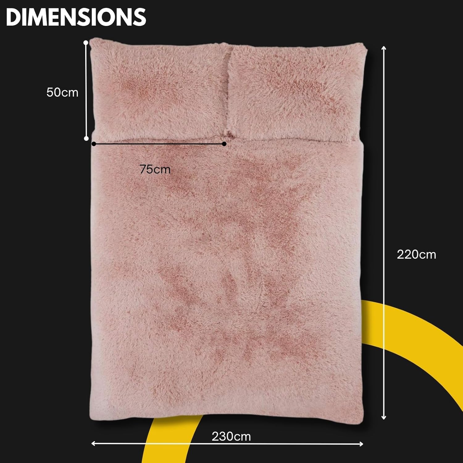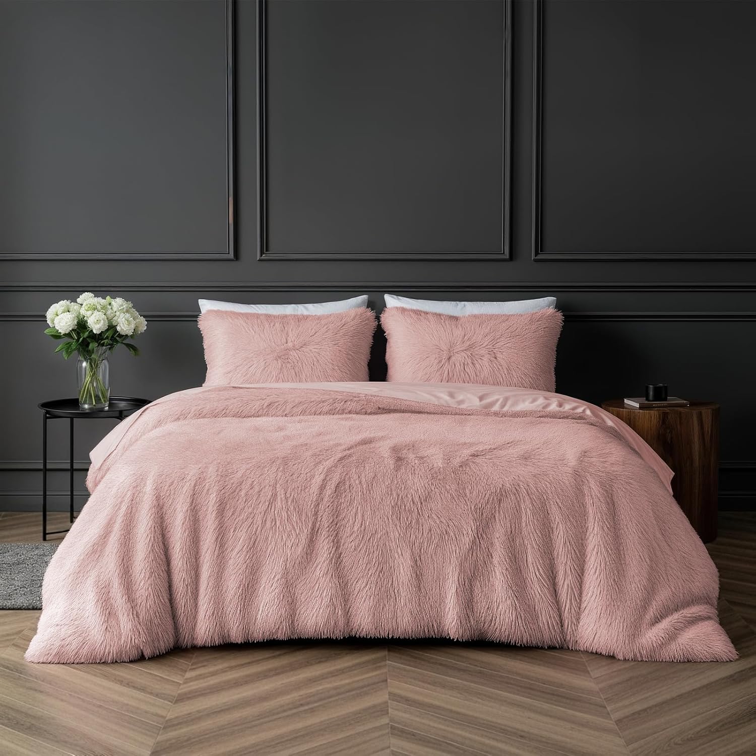 Teddy Long Pile Faux Fur Duvet Cover with Pillowcases – Blush Pink