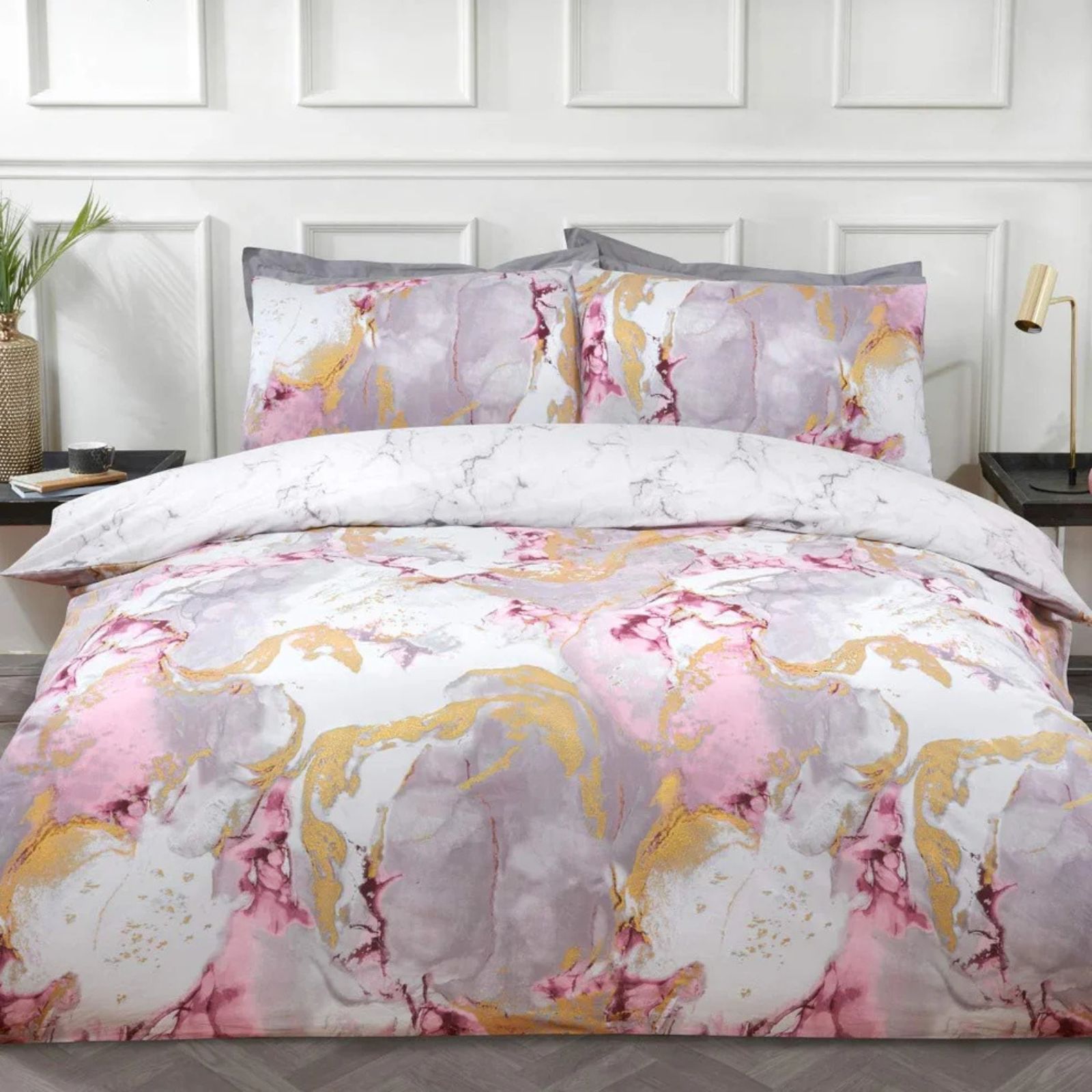 Metallic Marble Sparkle Glitz Reversible Soft Easy Care Duvet Cover Quilt Bedding Set with Pillowcase Classic glamour meets contemporary design in this stunning duvet set.