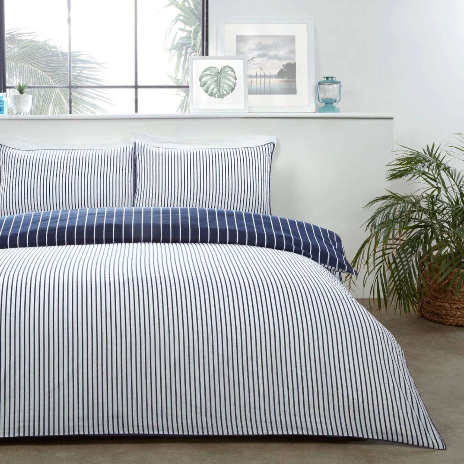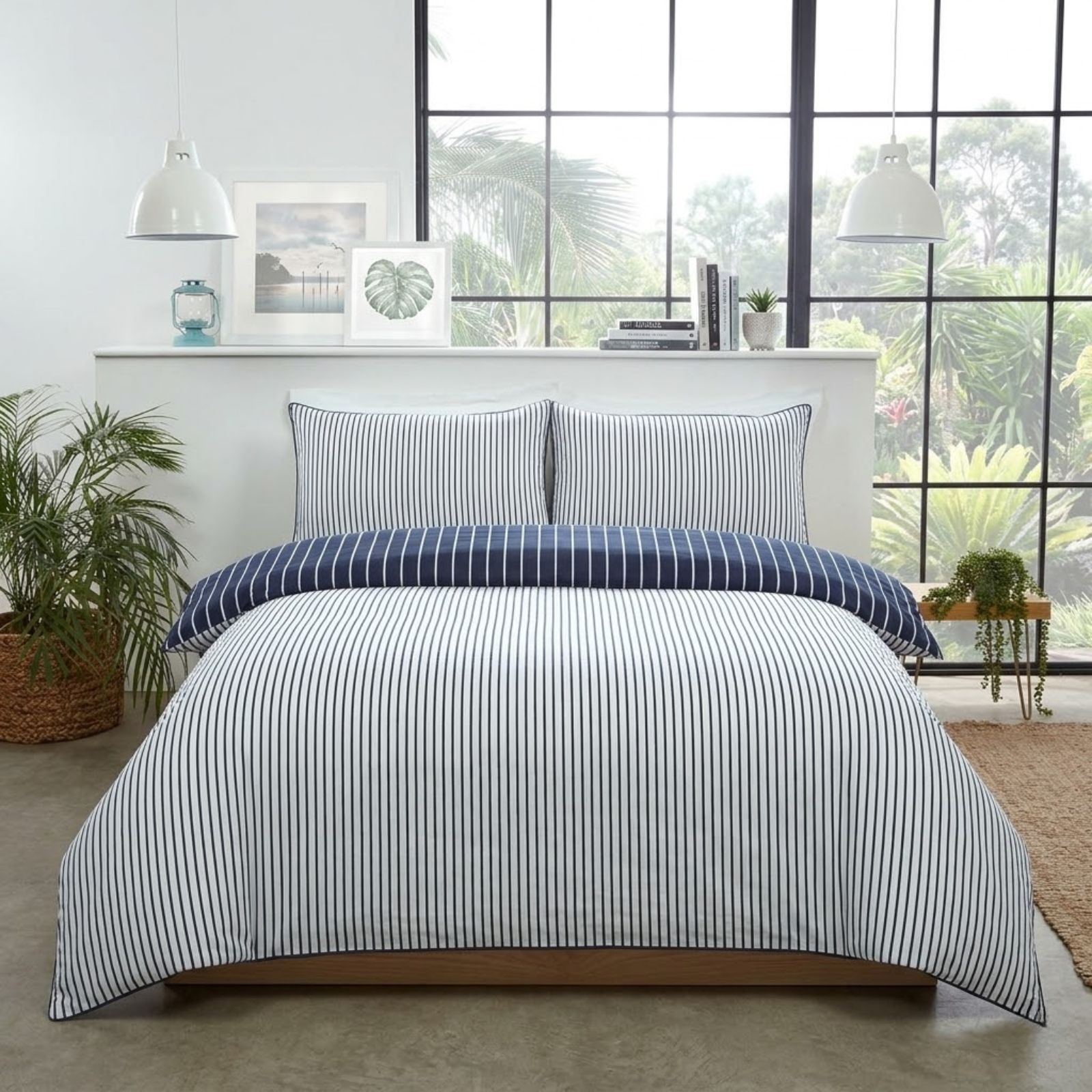 Mini Stripe Reversible Soft Easy Care Duvet Cover Quilt Bedding Set with Pillowcase