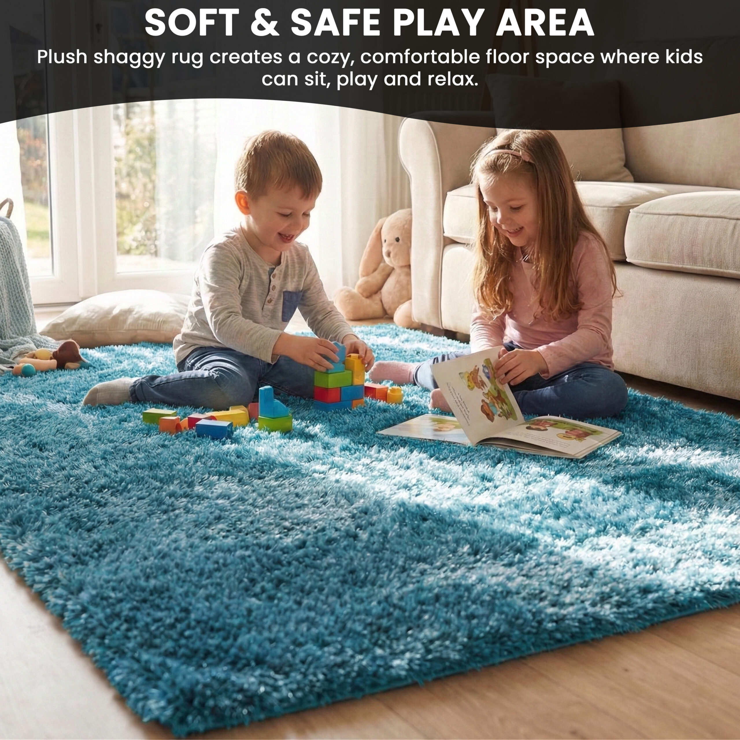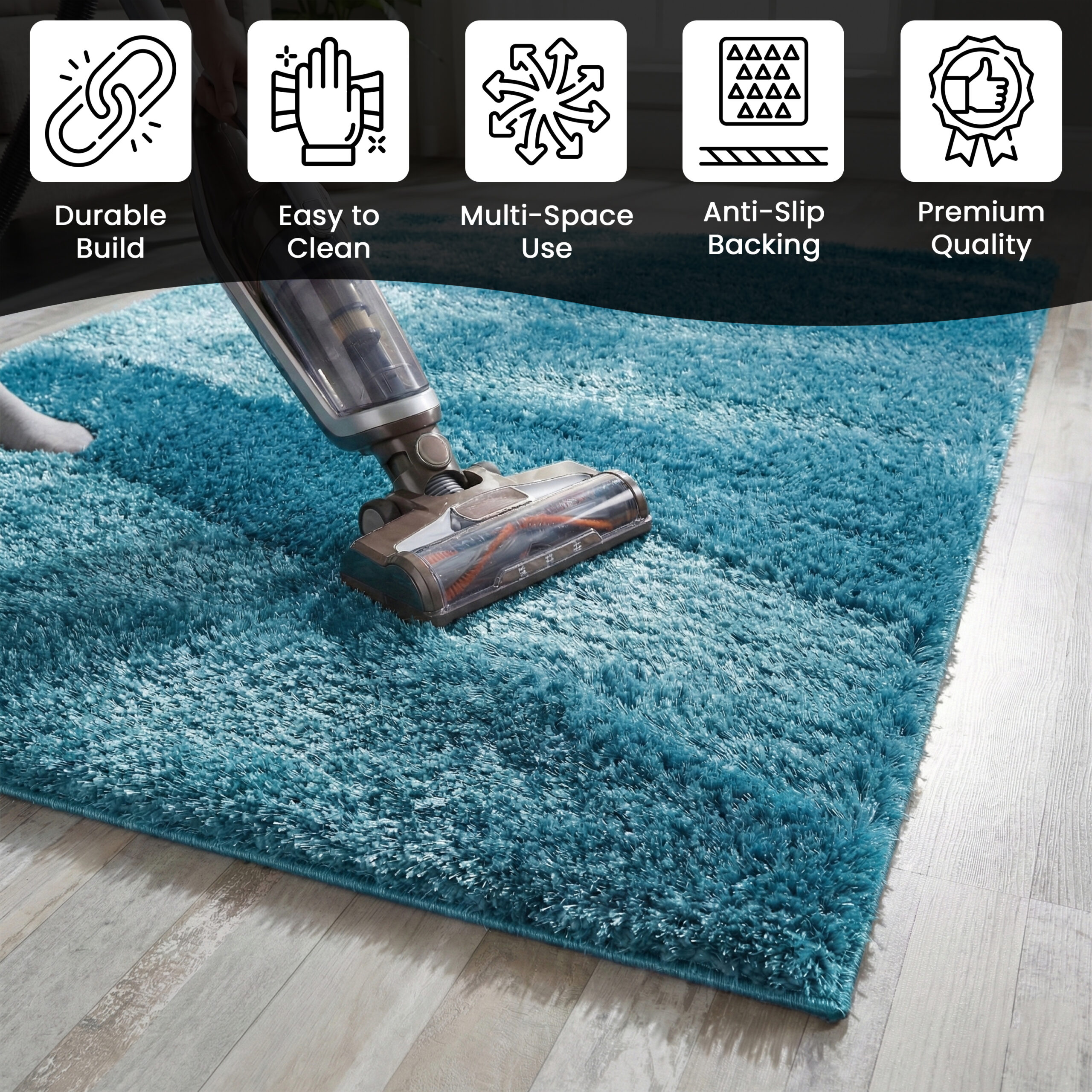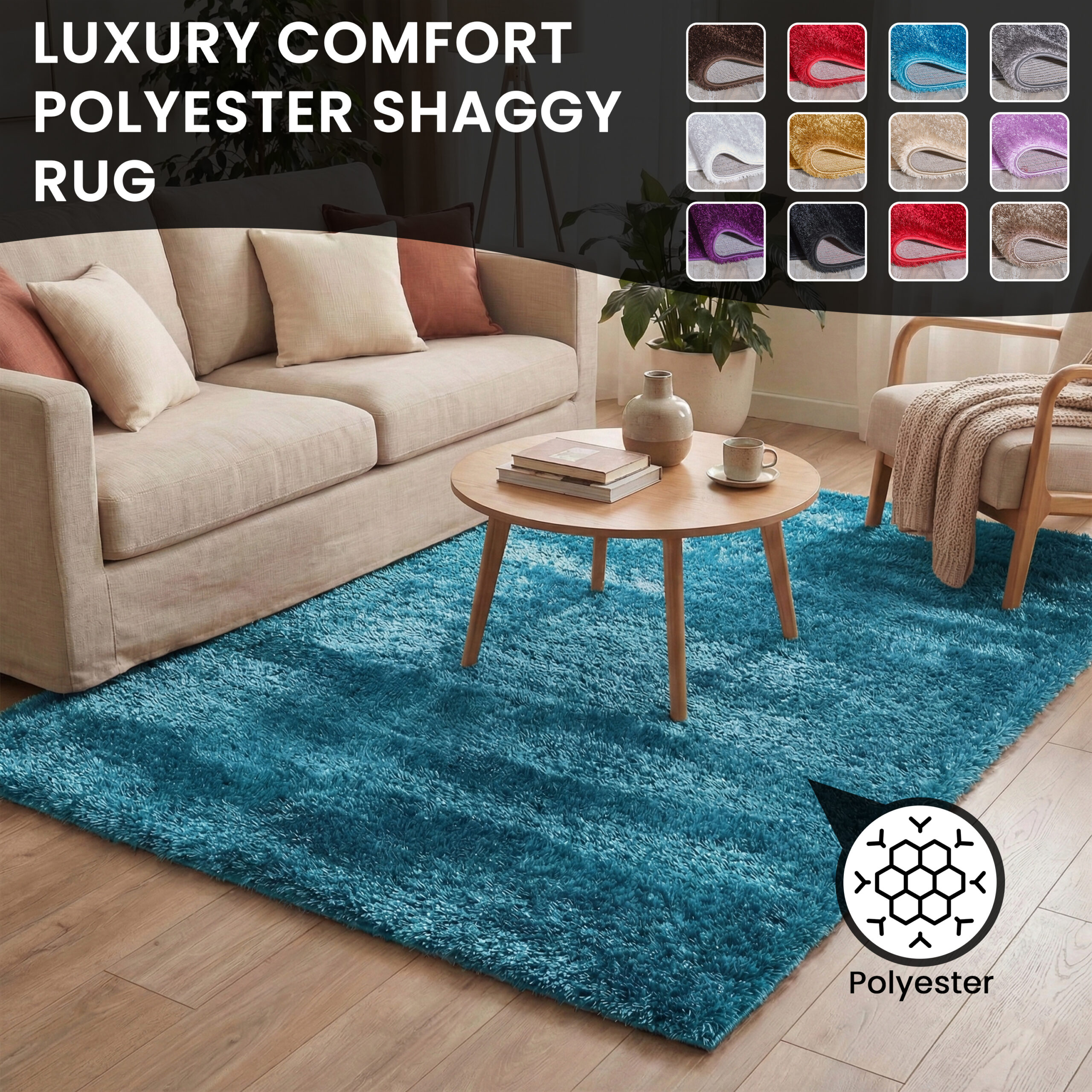 Polyester Shaggy Rug – Teal