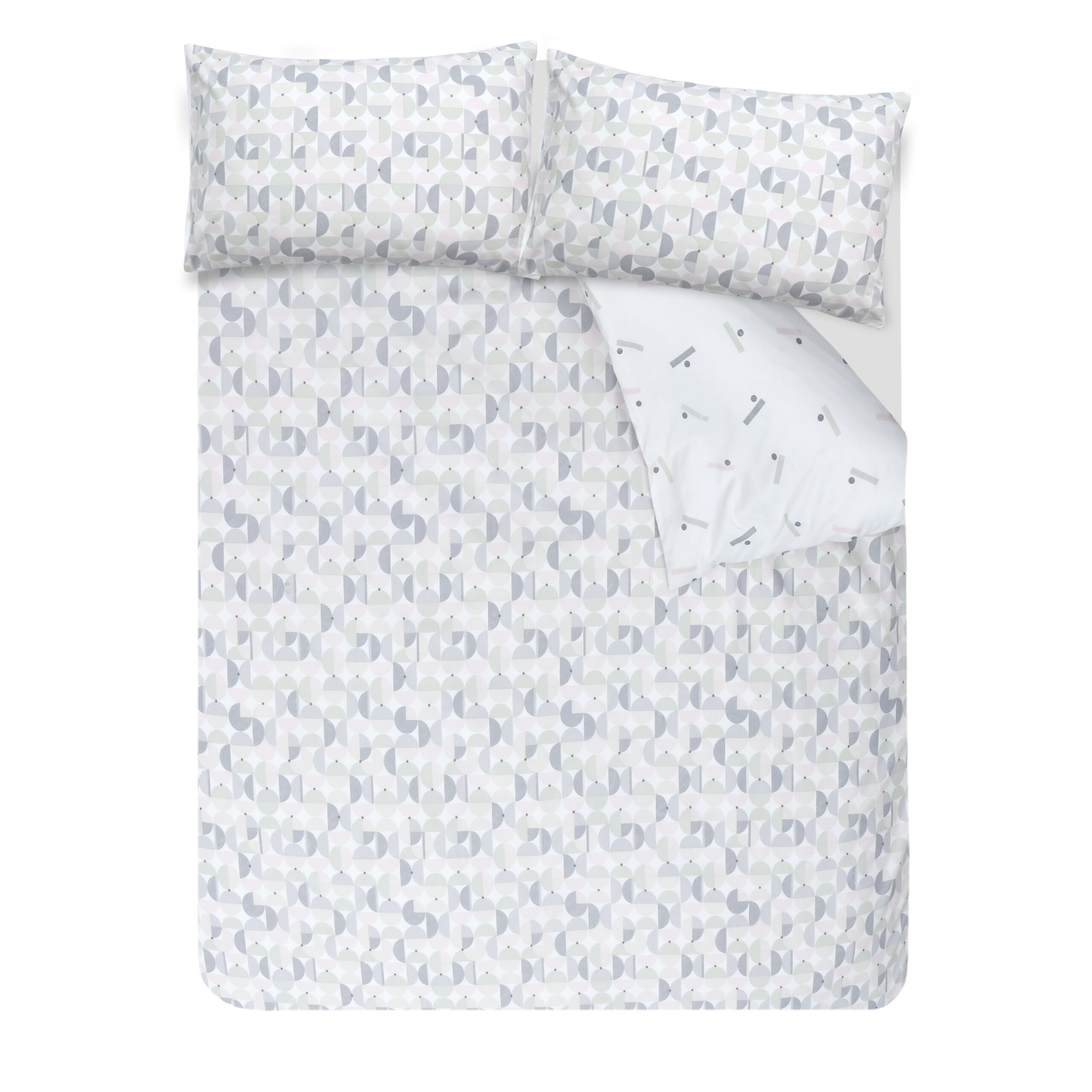 Printed Reversible Circle Geo Duvet Cover With Pillowcases – Blue