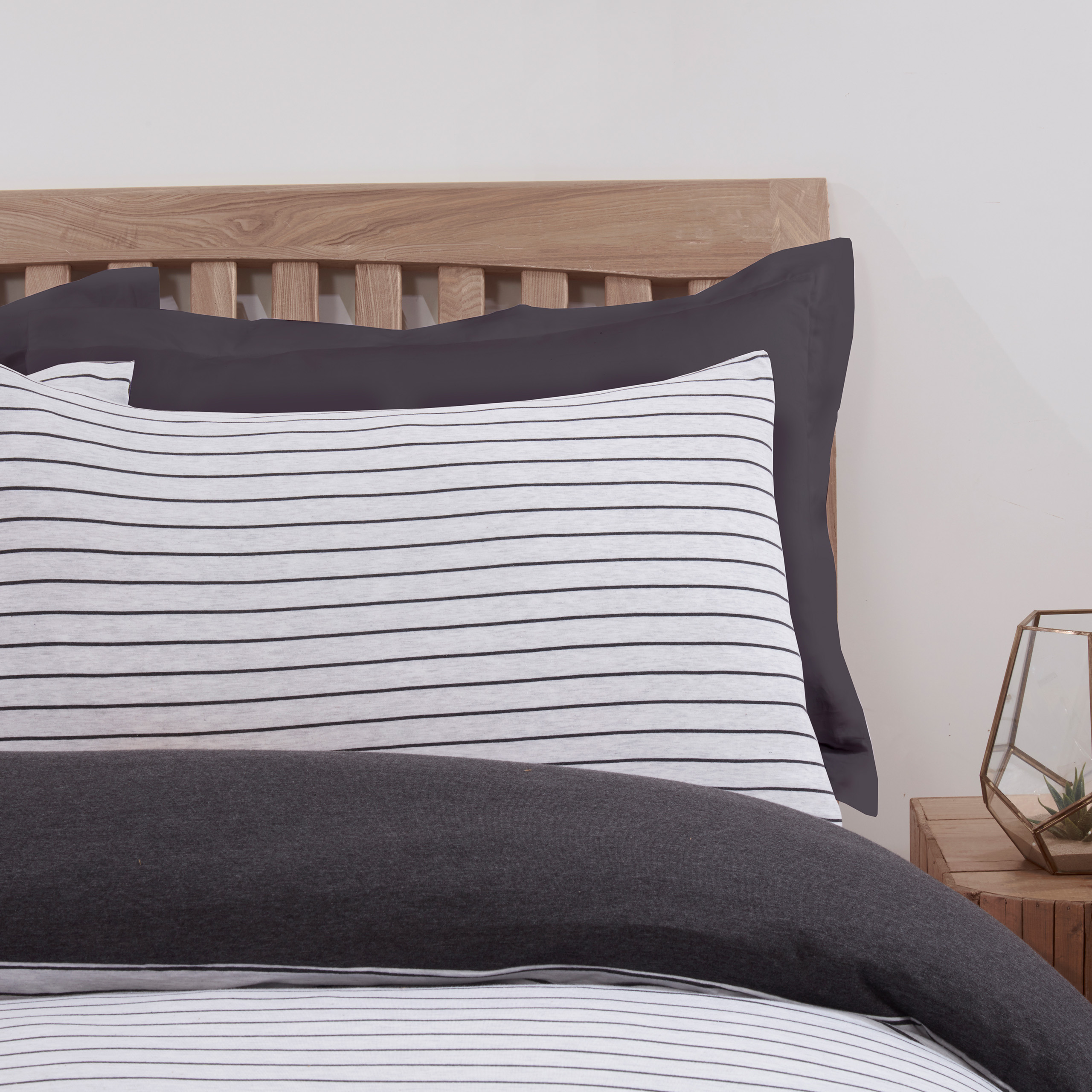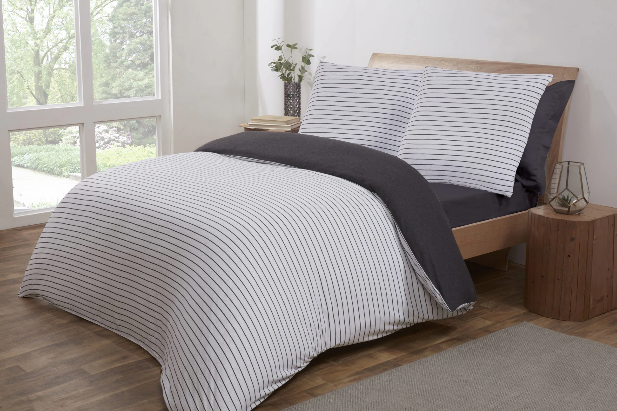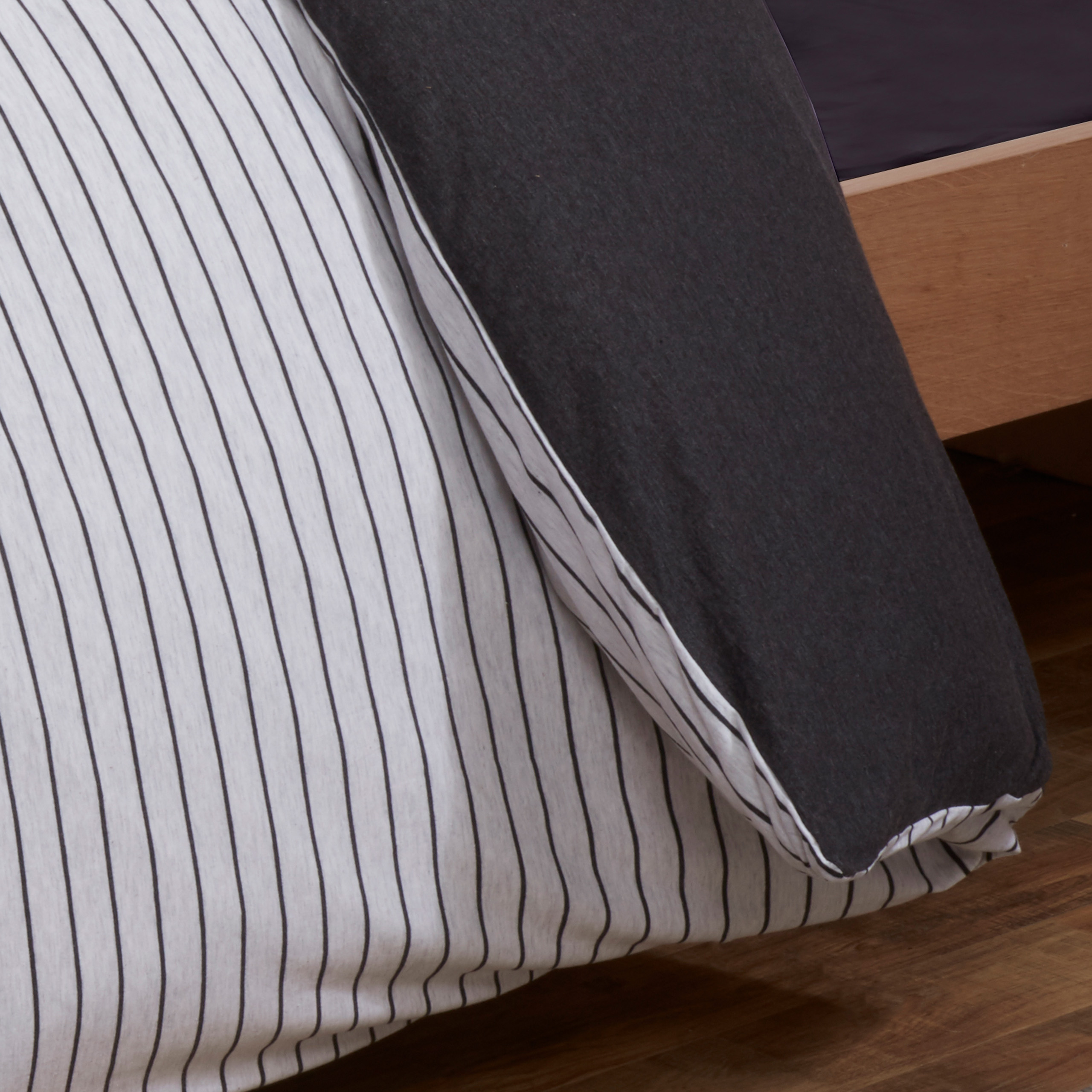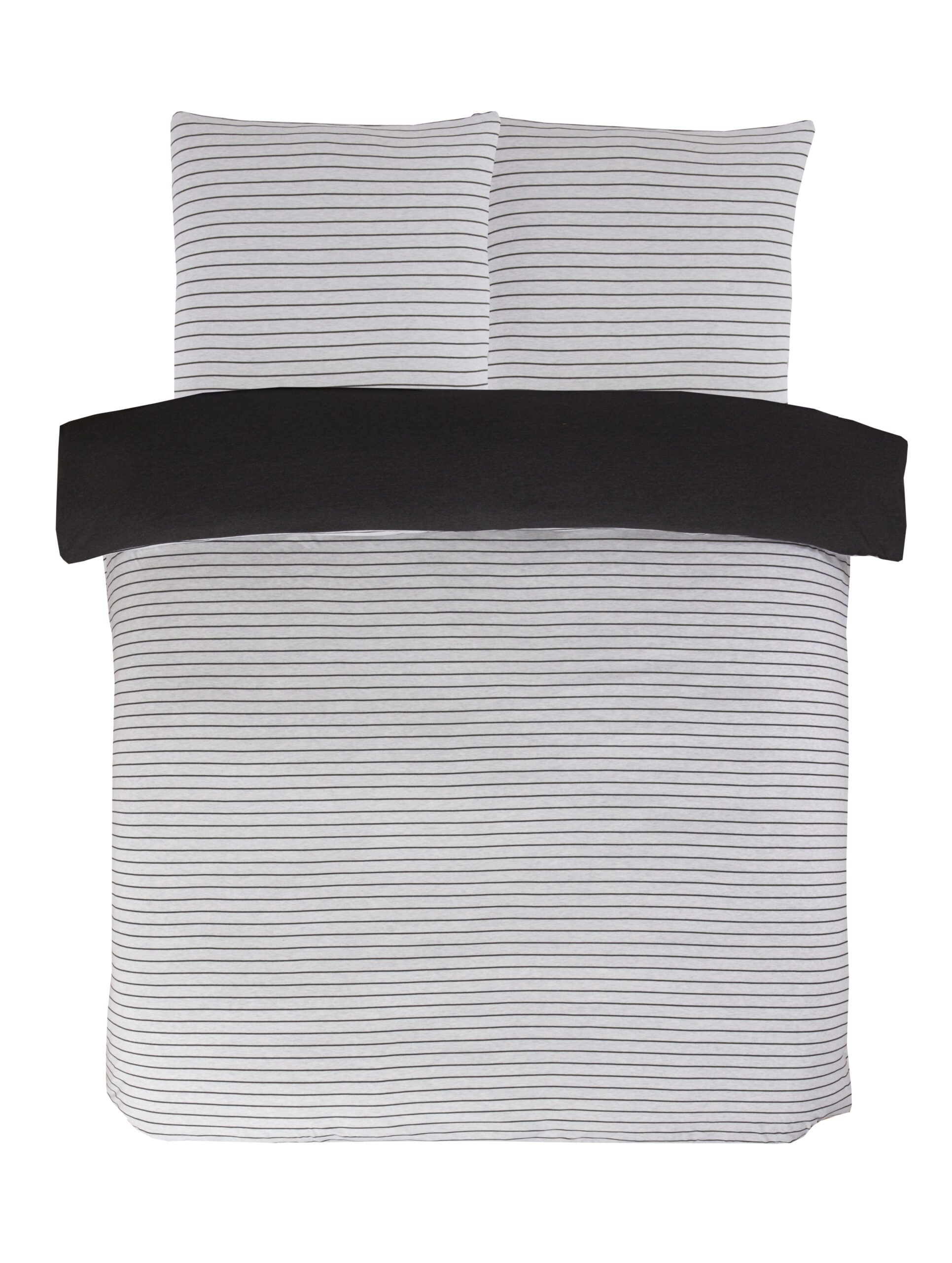 Stripe Jersey Melange Warm Cosy Super Soft Easy Care Plain Reversible Duvet Cover Quilt Bedding Set with Pillowcase.