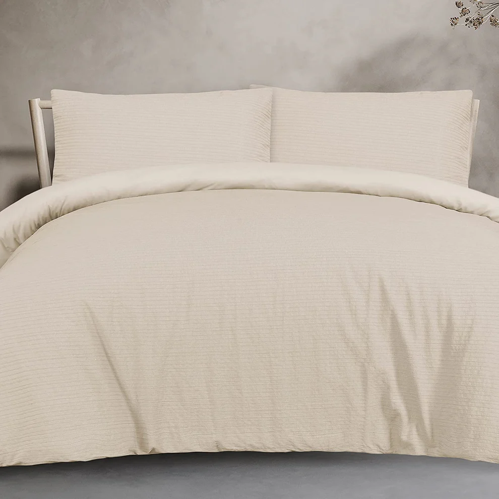 Available in elegant Natural and Green colour options, this easy-care duvet set combines practicality with sophisticated design for everyday luxury.