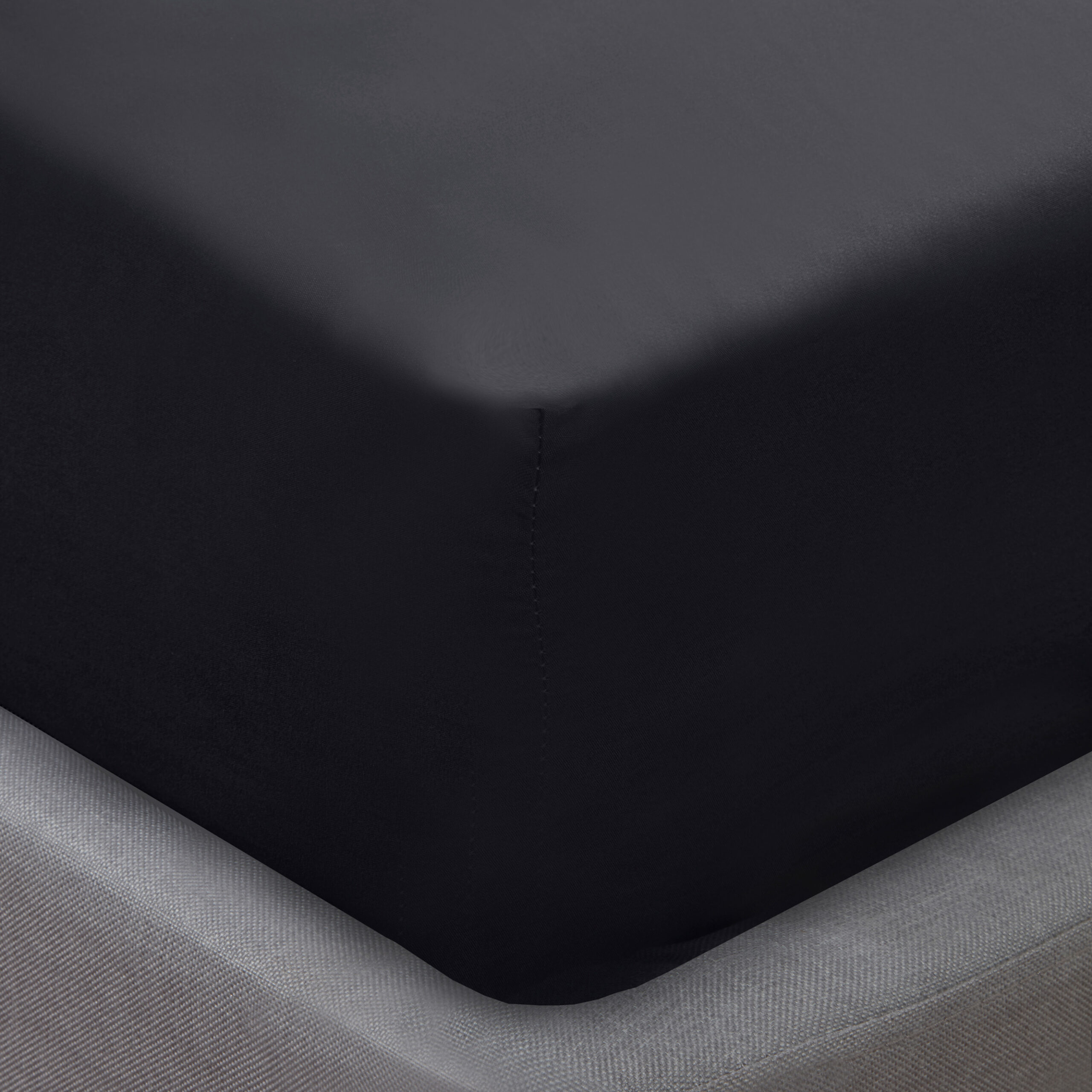 Super Soft Microfiber Plain Dye Warm Cosy Bed Linen 32cm Fitted Sheet – Black