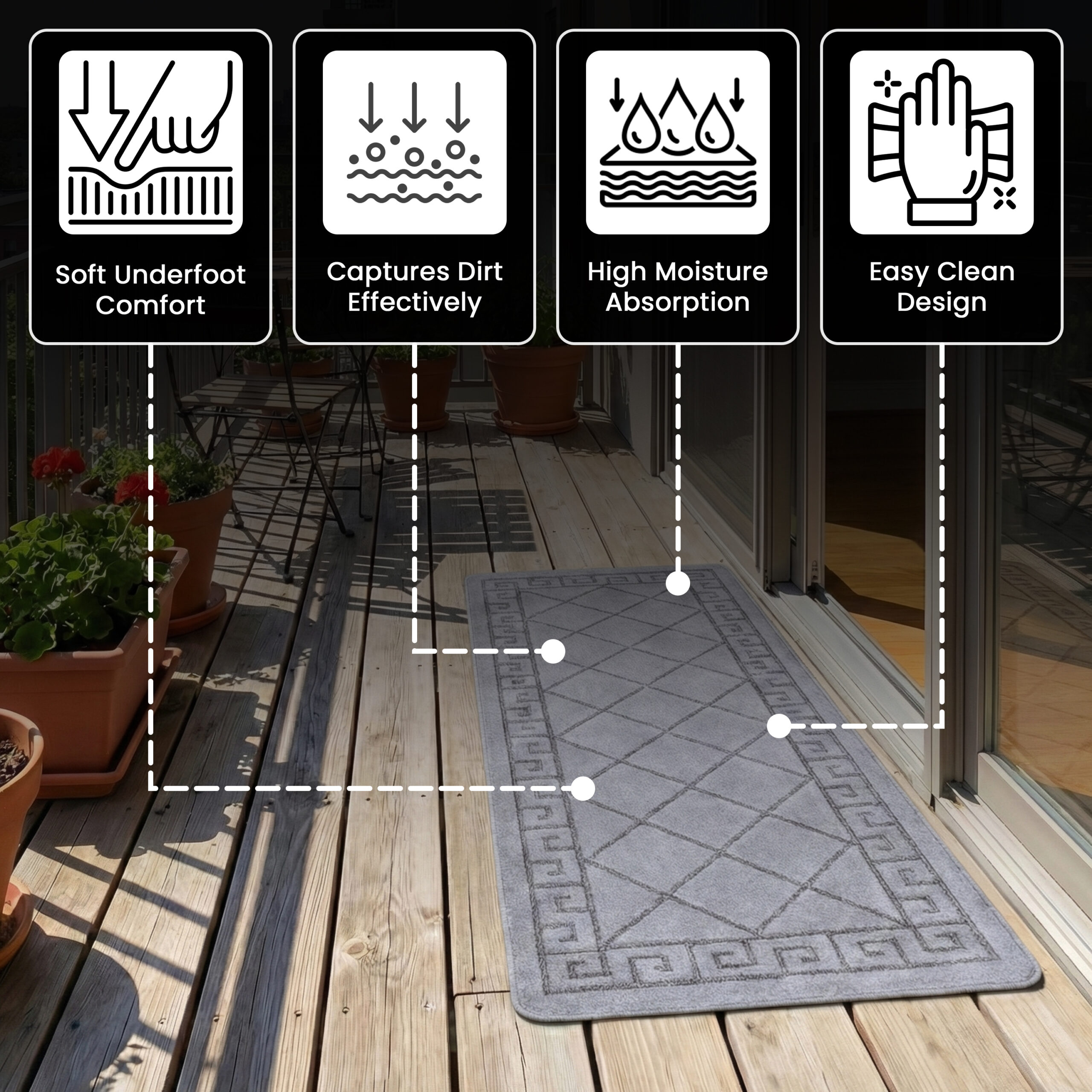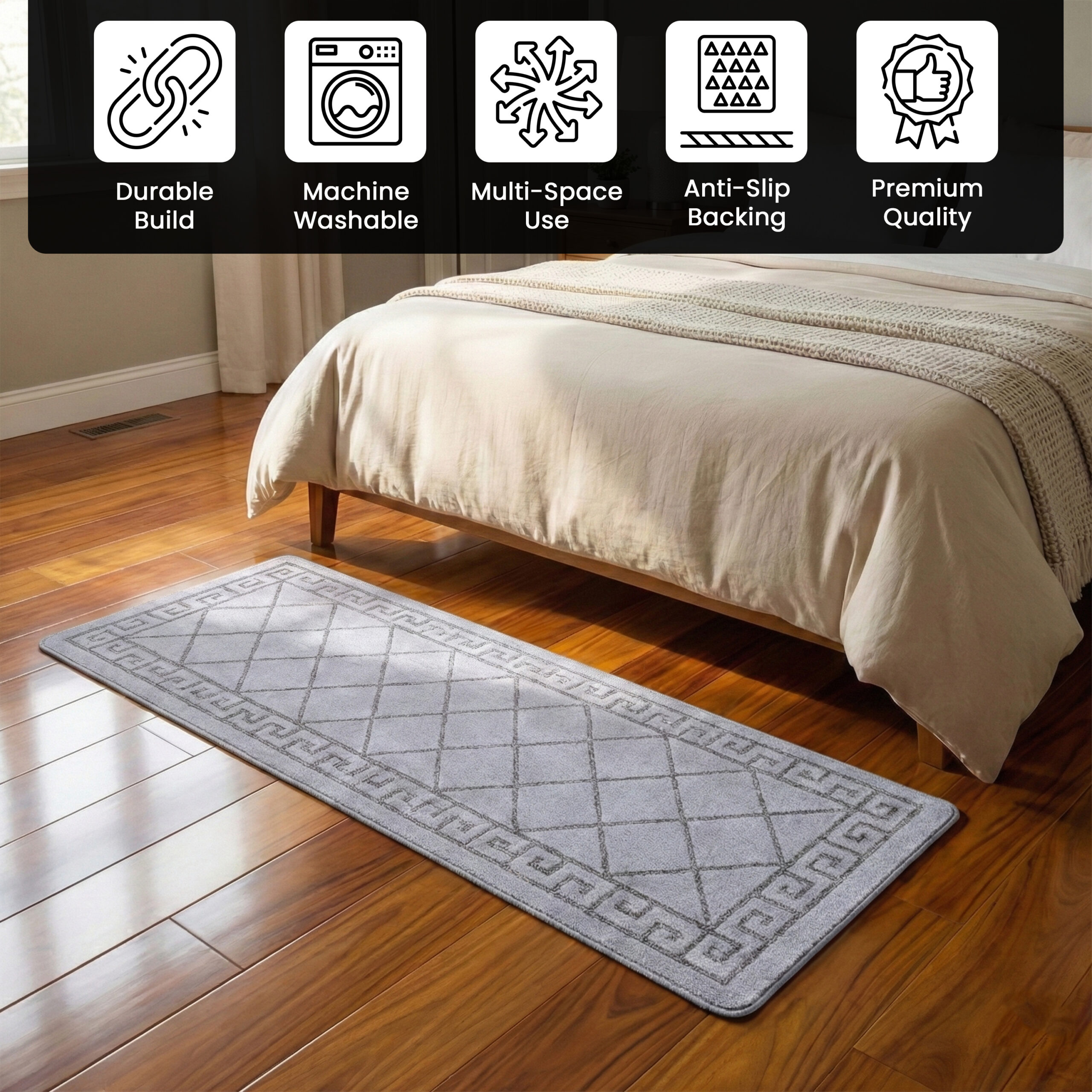 Machine washable non-slip mats ideal for hallways kitchens and door entrances.