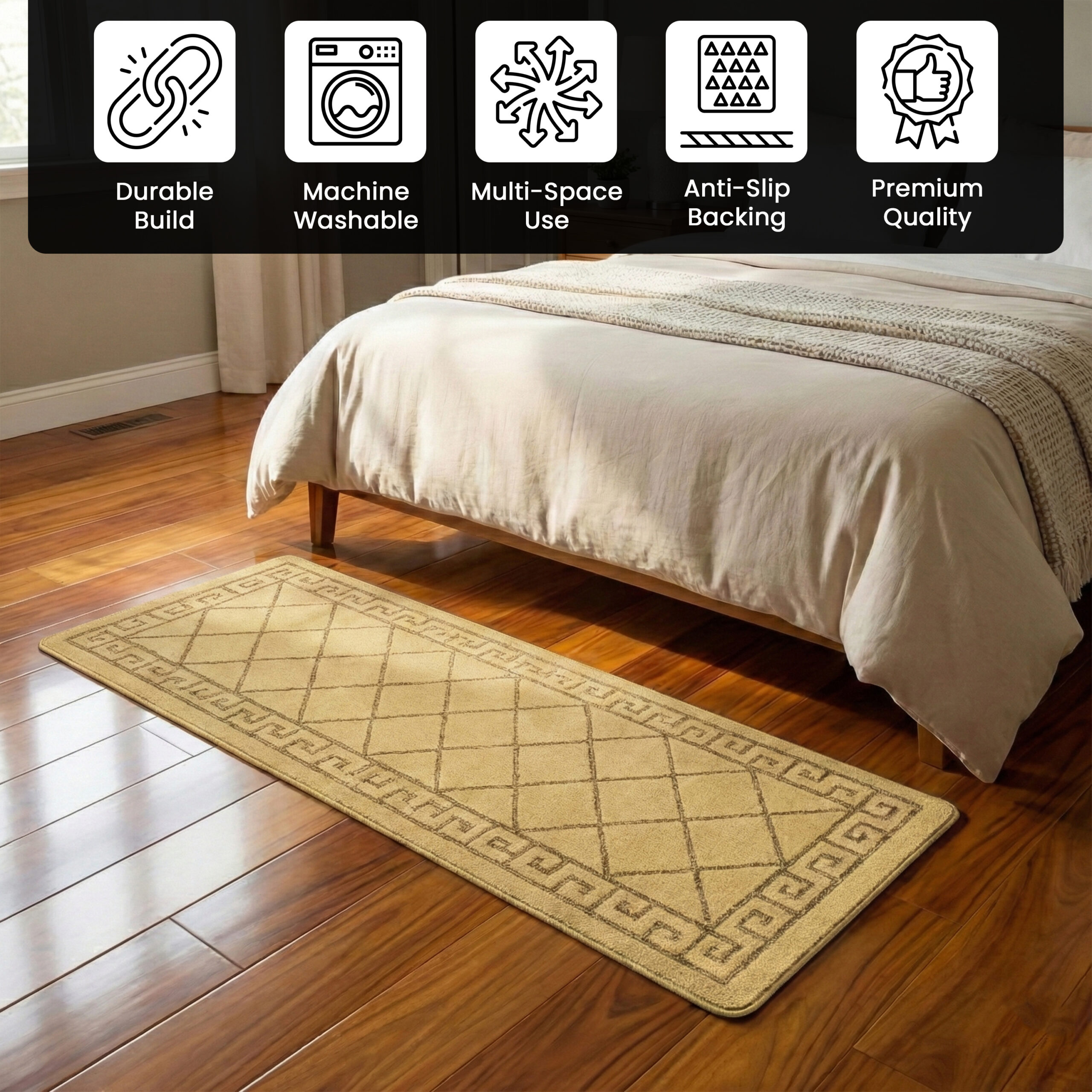 Machine washable non-slip mats ideal for hallways kitchens and door entrances.
