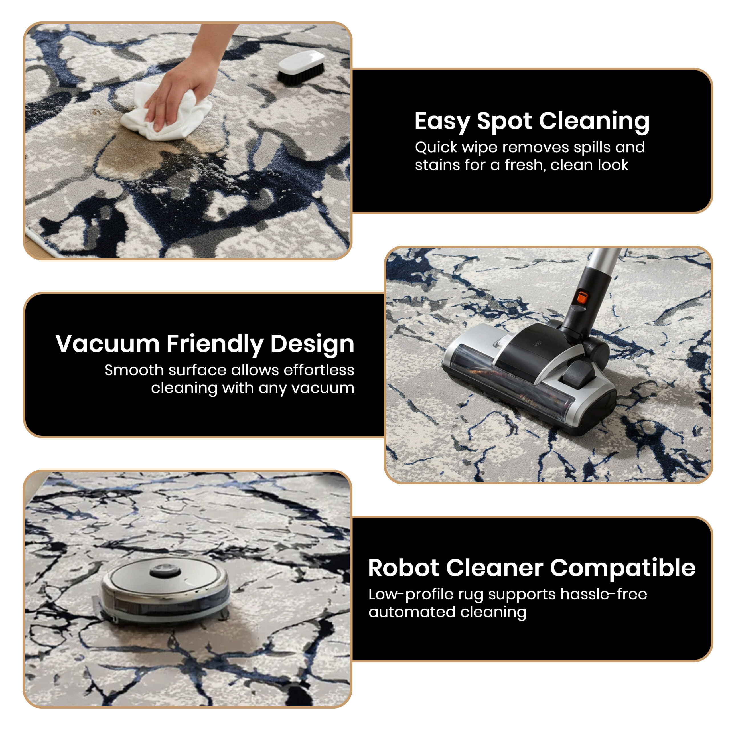 Vacuum regularly to maintain appearance. Spot clean with a damp cloth and mild soap if needed. Avoid using harsh chemicals or bleach and keep the rug away from direct sunlight or strong heat sources.
