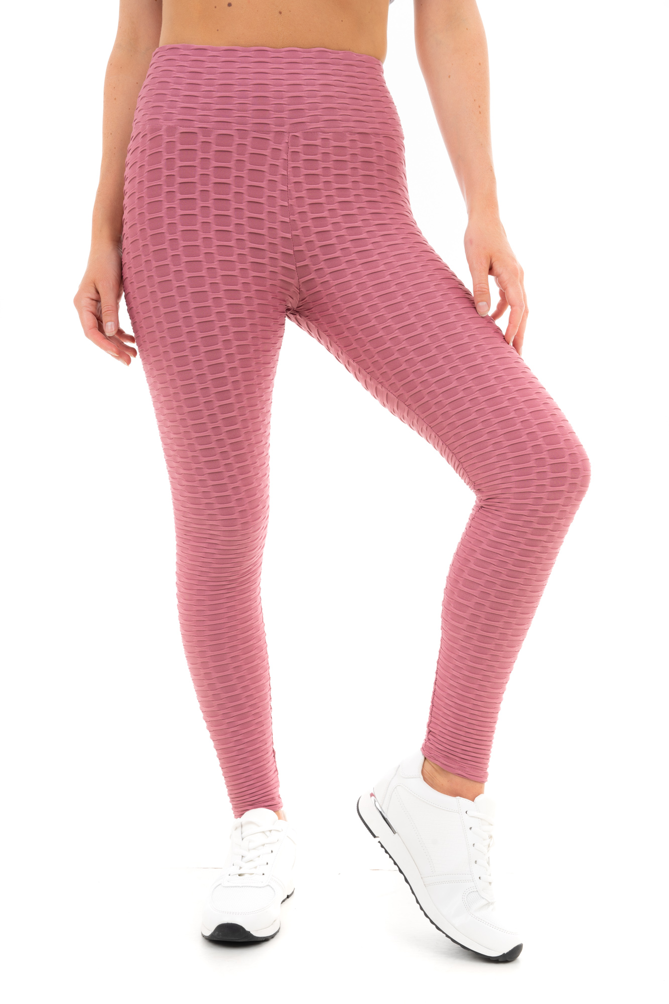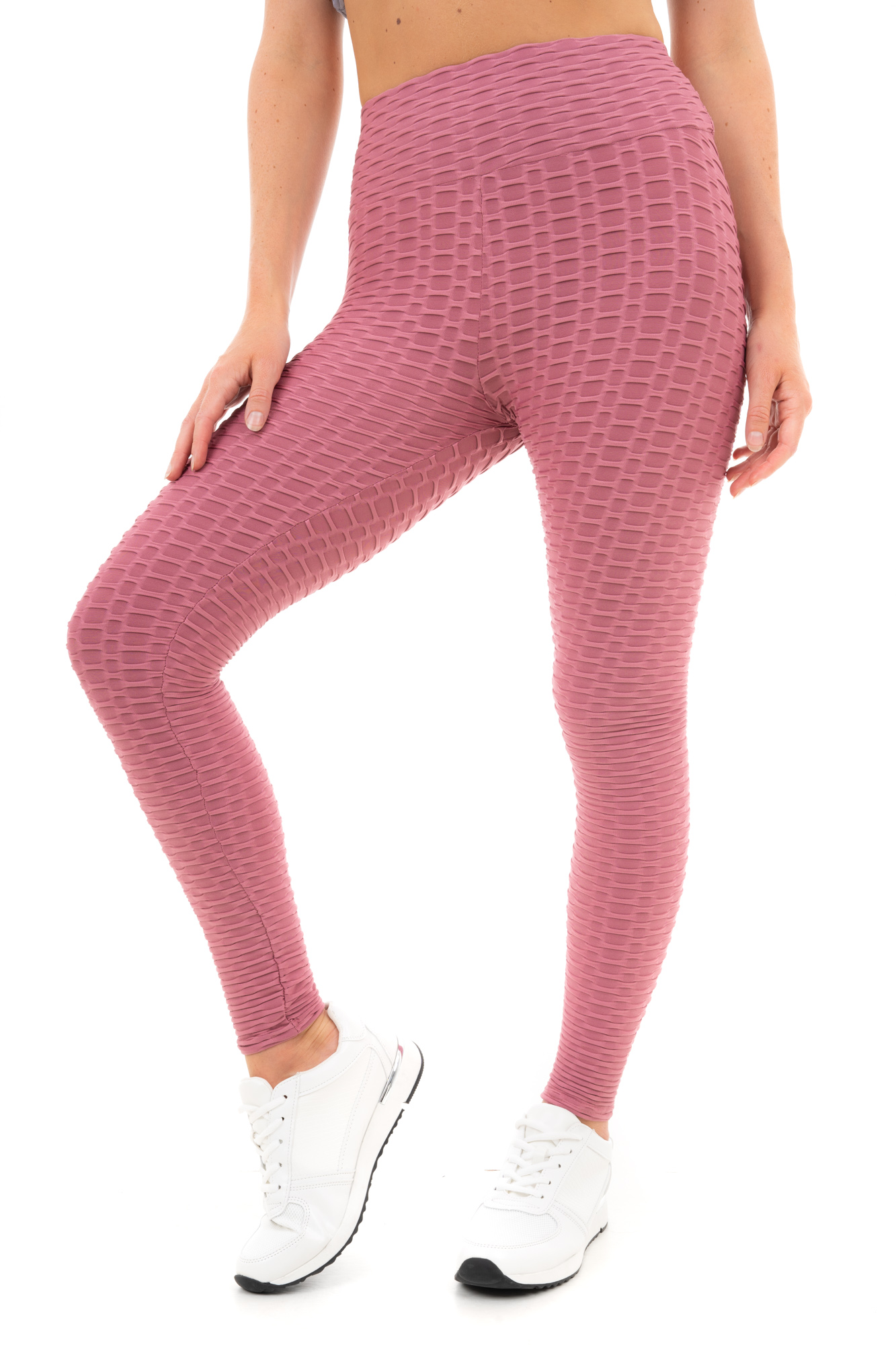 Elevate your workout wardrobe with these honeycomb waffle leggings, designed for both style and performance. The moisture-wicking and quick-dry fabric ensures you stay cool and comfortable during any activity, while the non-see-through material provides full confidence. Engineered for a secure fit, these leggings enhance your natural curves with scrunch detailing for a flattering lift and a high-waisted design for effective tummy control. Perfect for yoga, running, Pilates, or even casual outings, these leggings support your active lifestyle with ease and versatility.