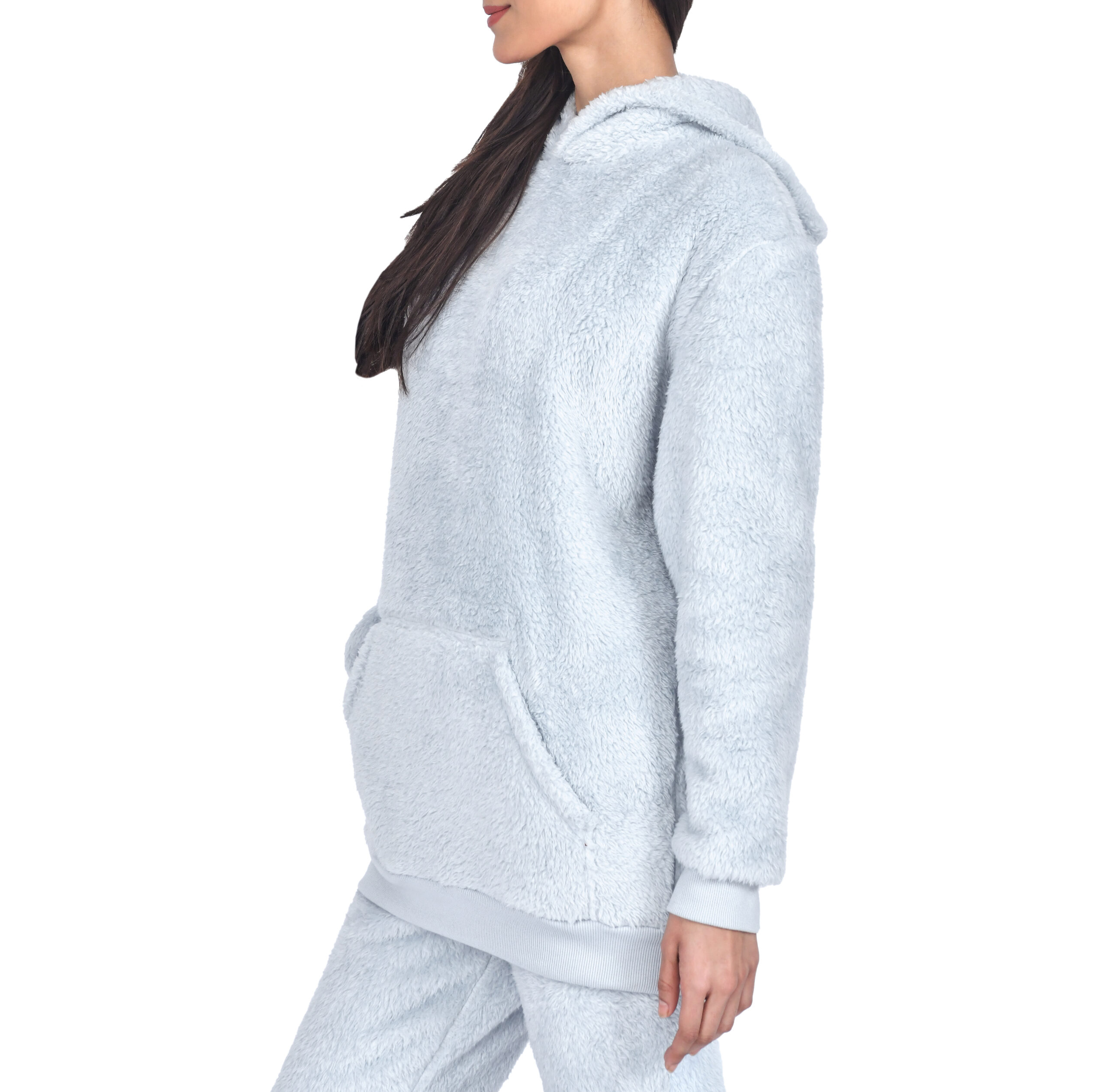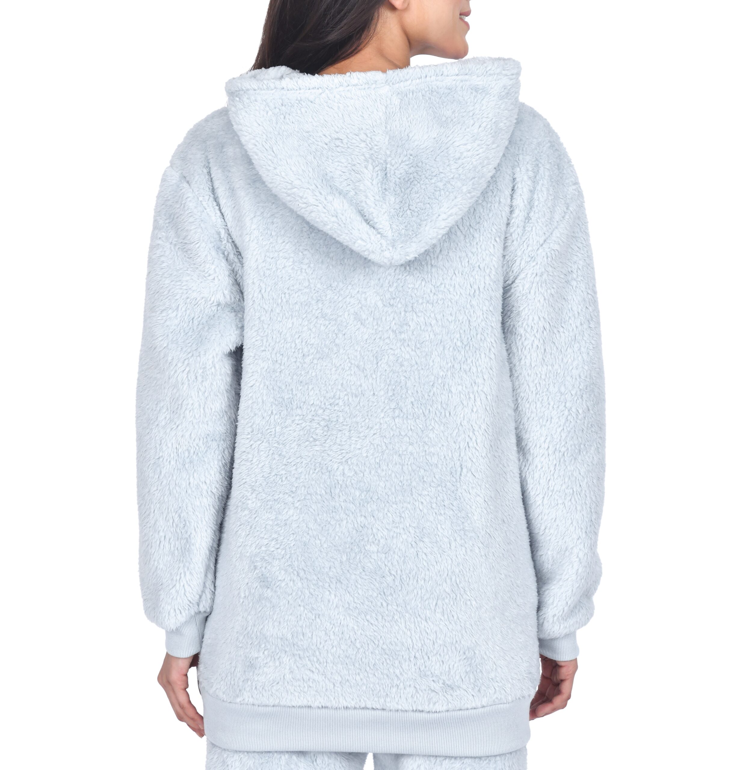 Wrap yourself in ultimate comfort and style with our Women’s Teddy Fleece Hoodie, the perfect blend of coziness and fashion. Crafted from 100% polyester, this hoodie offers a plush, ultra-soft feel that’s ideal for lounging at home or stepping out on casual errands. Its extra-length fit ensures full coverage and warmth, while the kangaroo pocket provides both functionality and a touch of laid-back style. Cuffed sleeves and a ribbed hem enhance its snug fit and chic appeal.