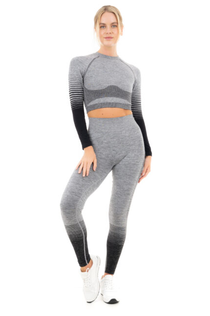 Women’s Gradient Stripe Seamless Long Sleeve Crop Top – Grey Marl/Black